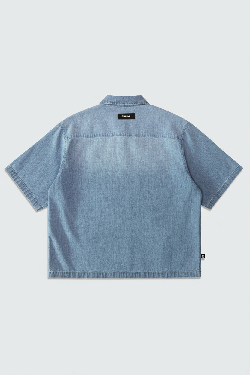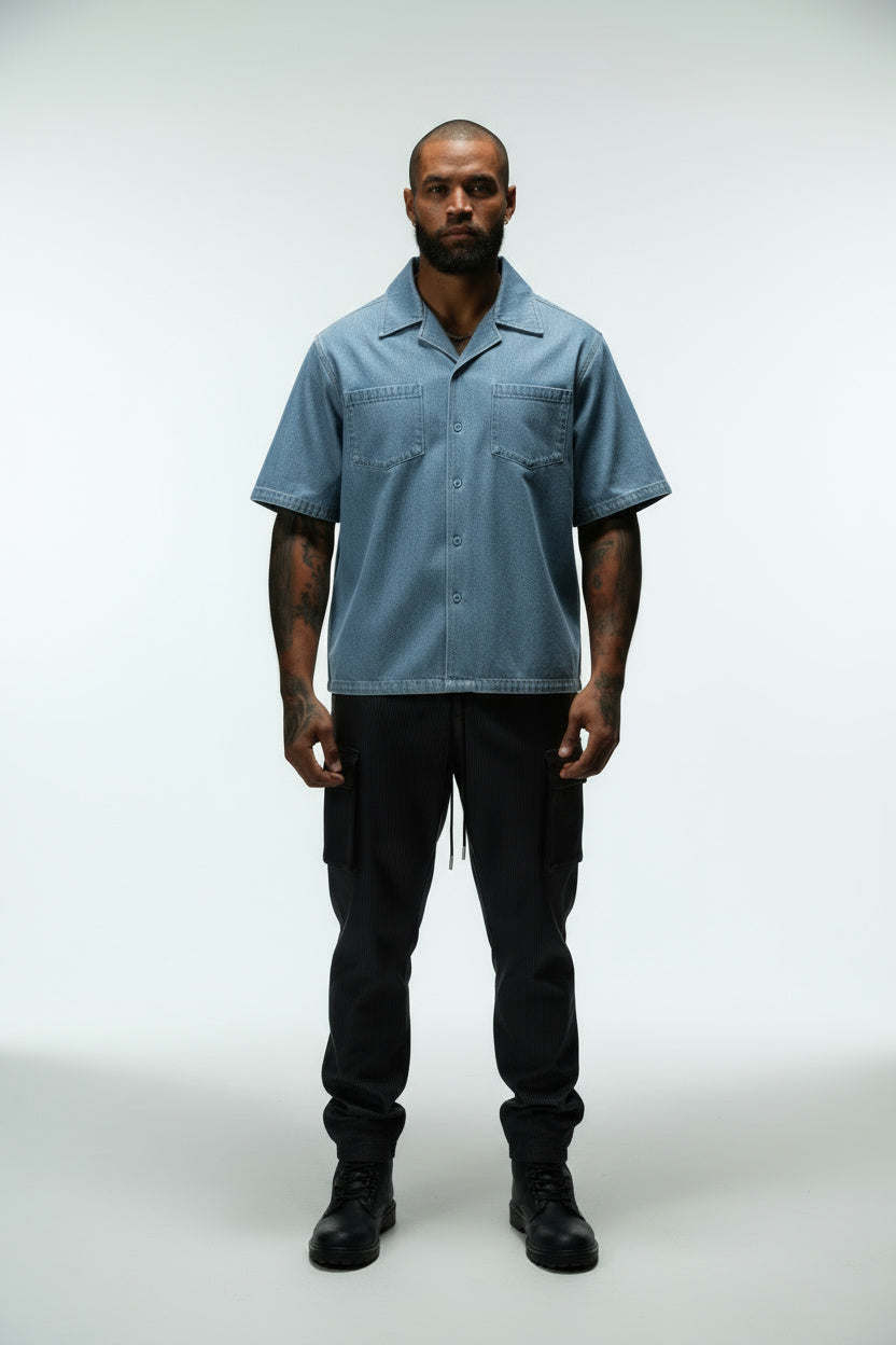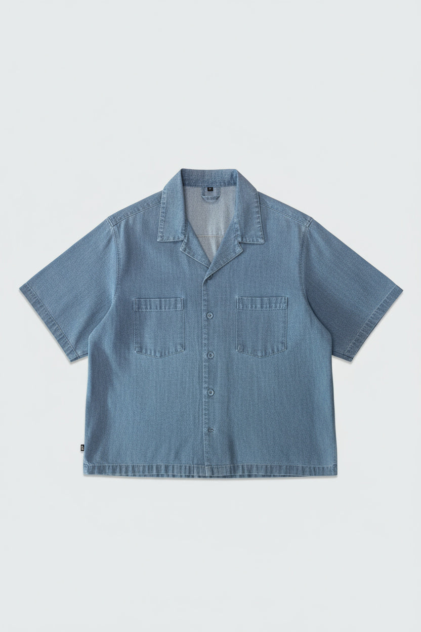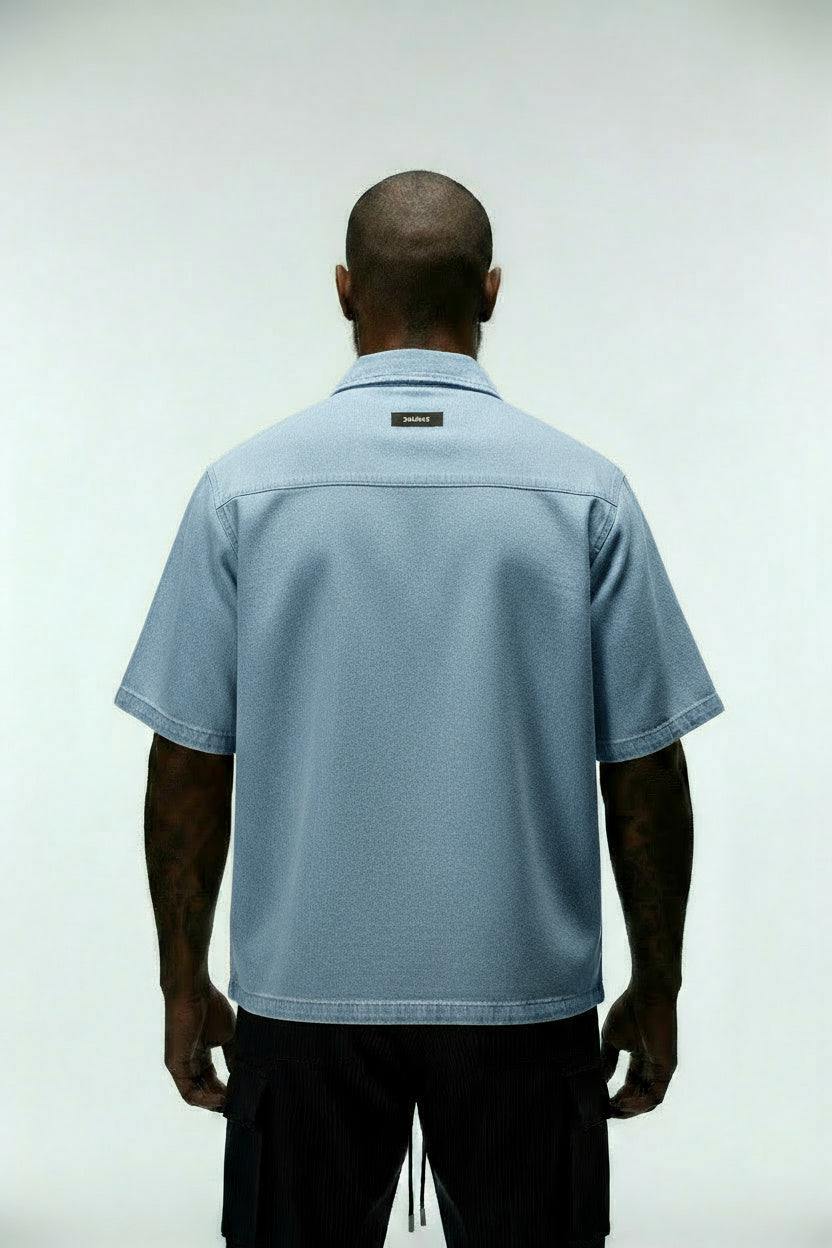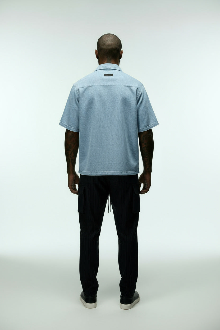 AEGEAN CROPPED CUBAN BUTTON DOWN SHIRT - LIGHT BLUE