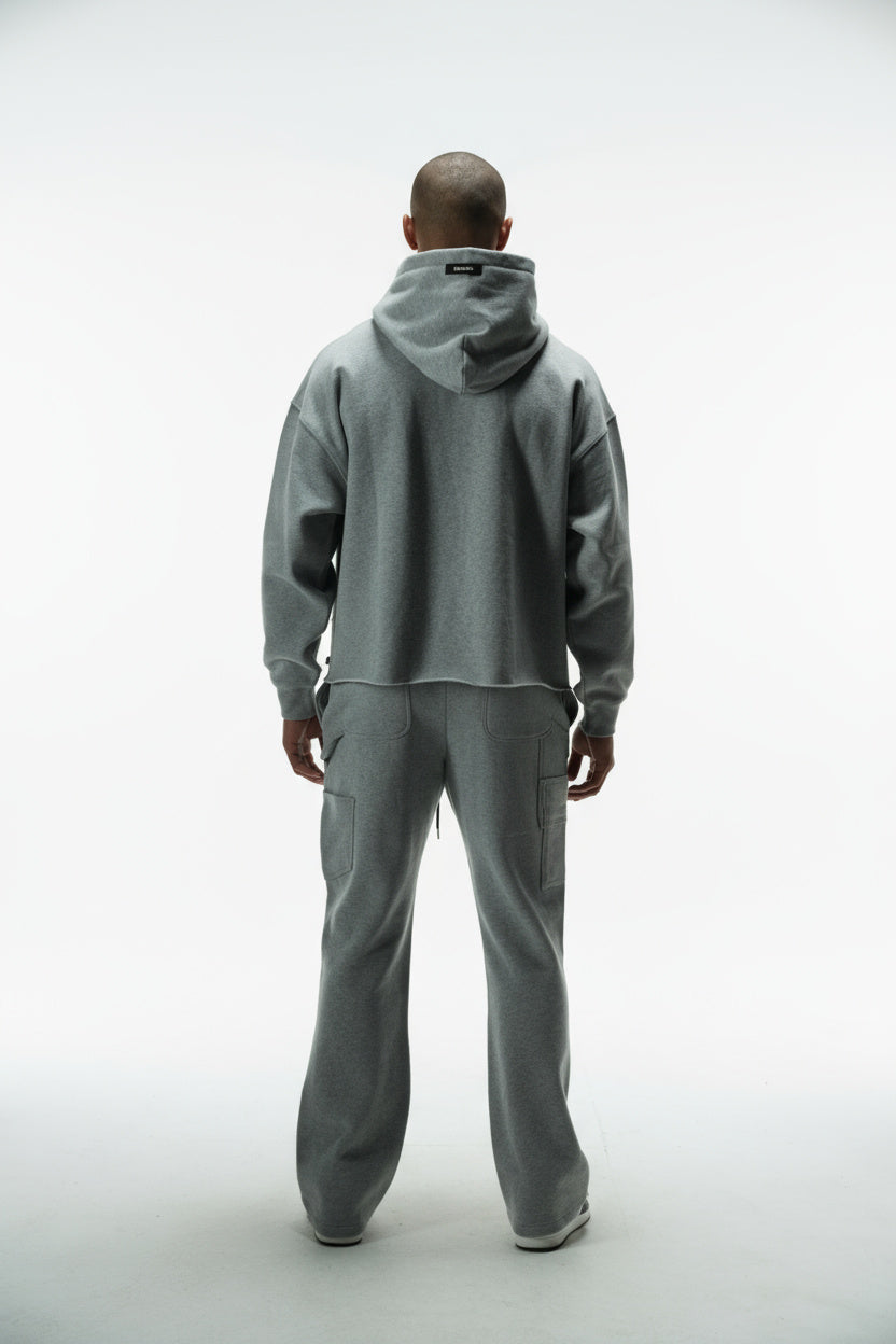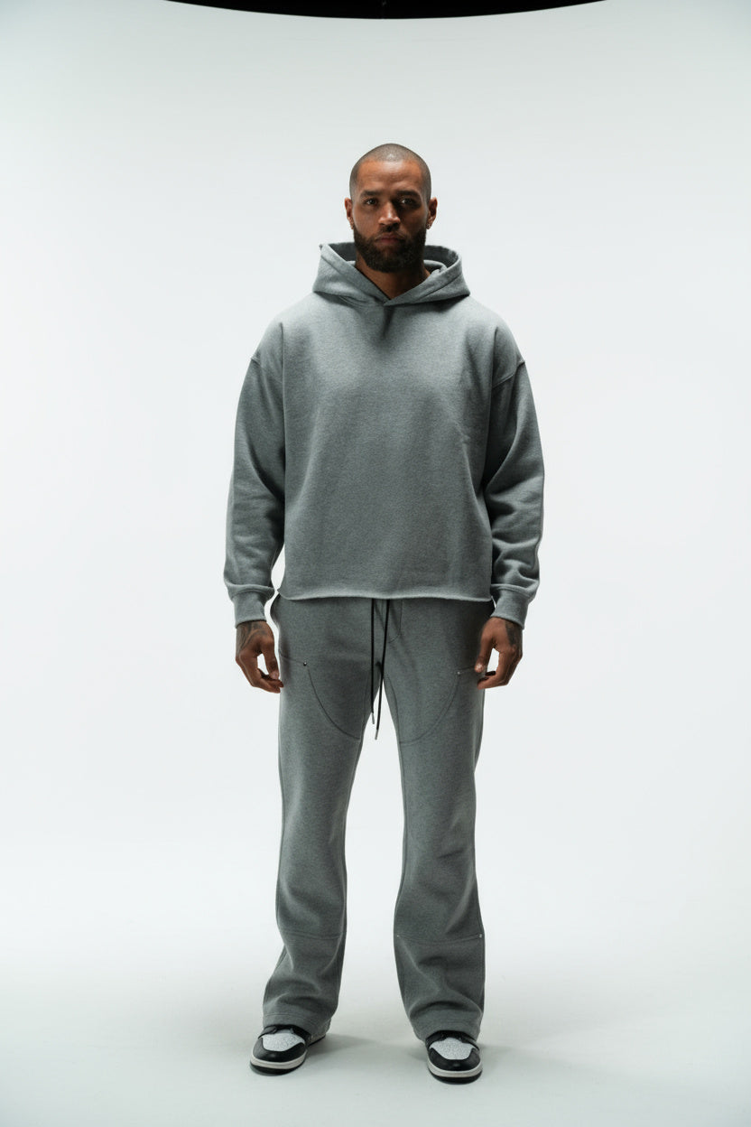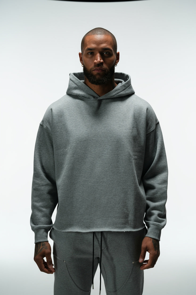 FATE HEAVYWEIGHT FLEECE CROPPED RAW HEM HOODIE - HEATHER GREY