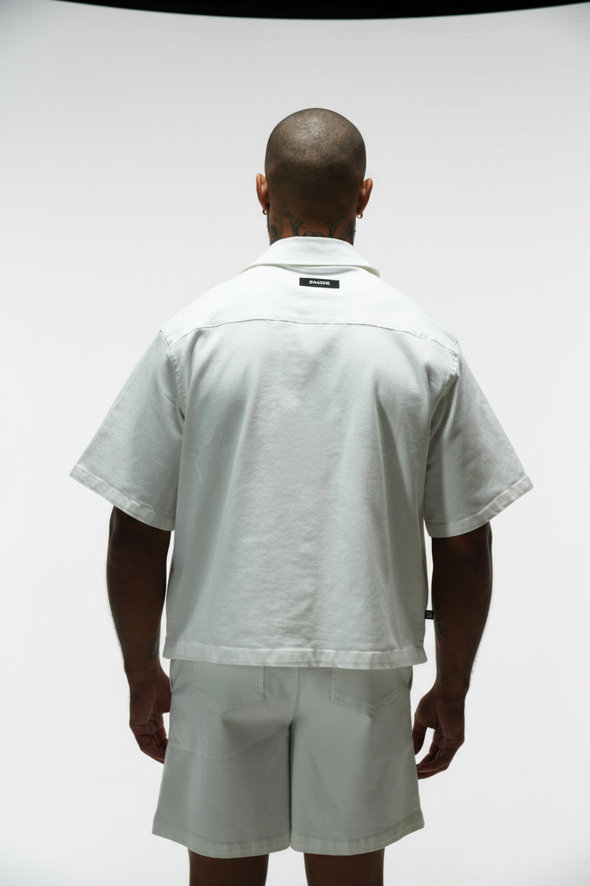 IMMORTAL CROPPED CUBAN BUTTON DOWN SHIRT - WHITE