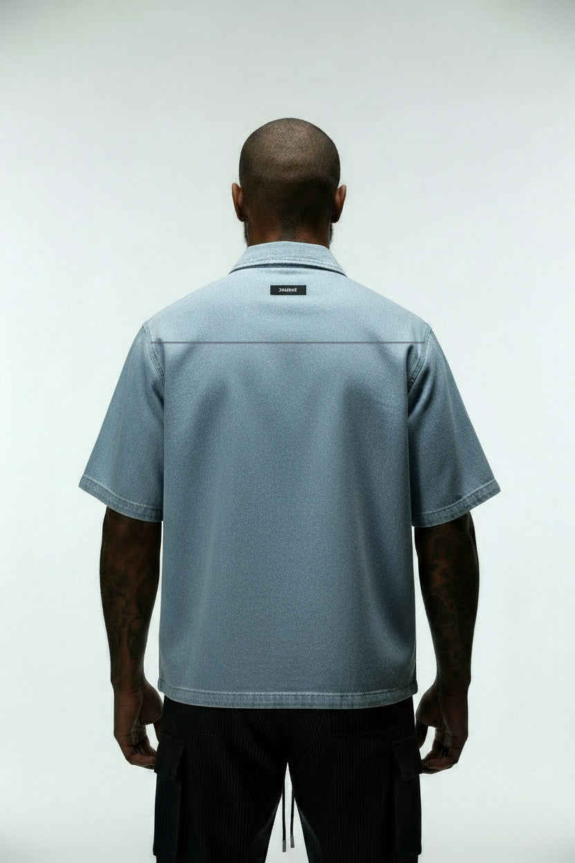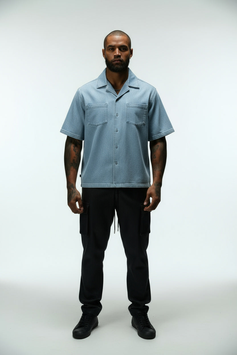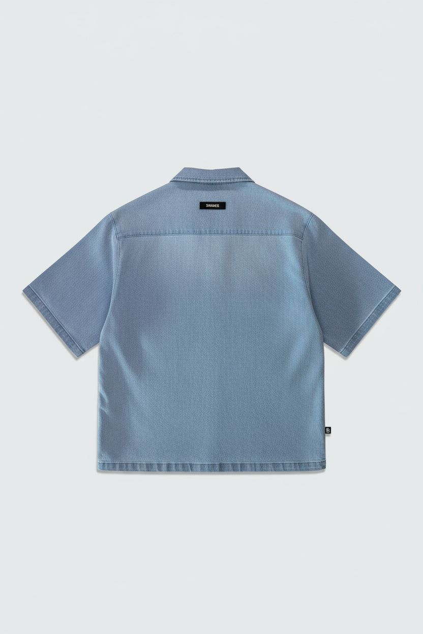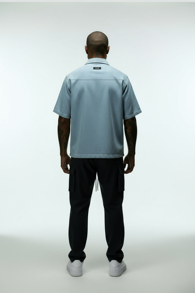 CASPIAN CROPPED CUBAN BUTTON DOWN SHIRT - LIGHT BLUE