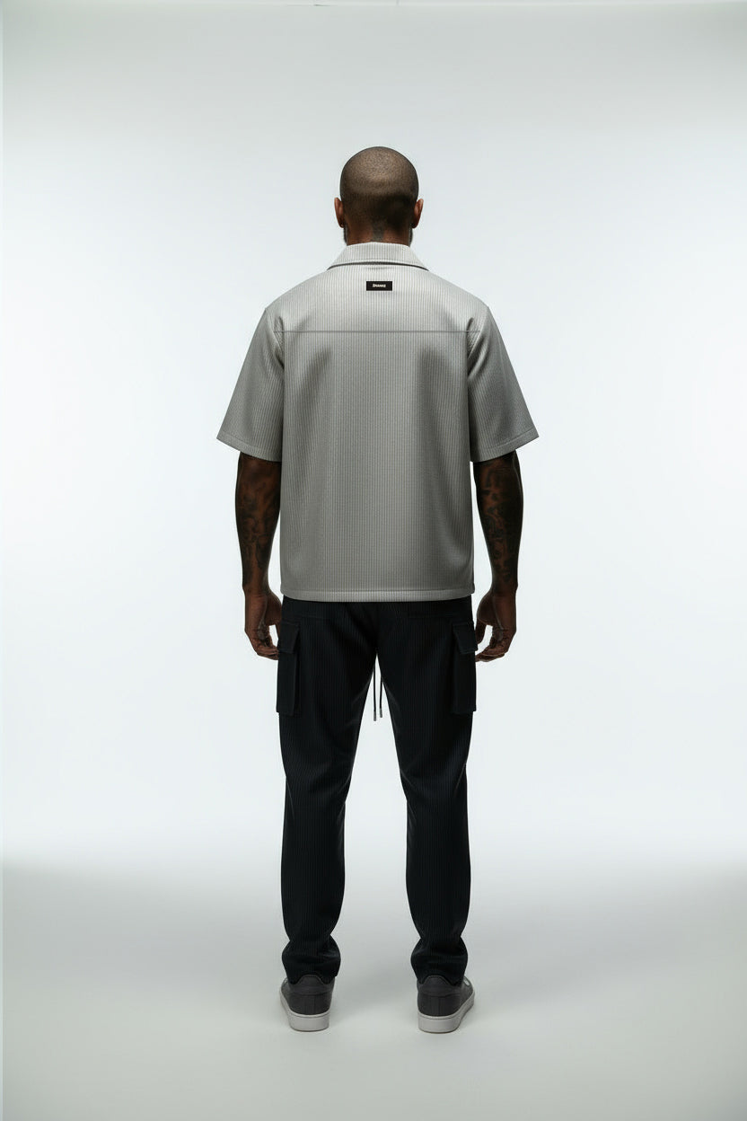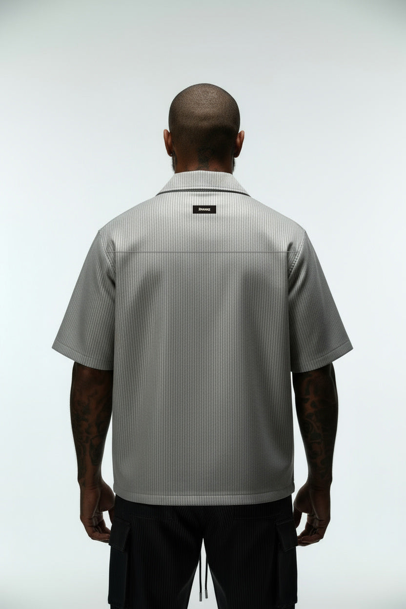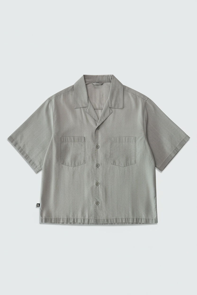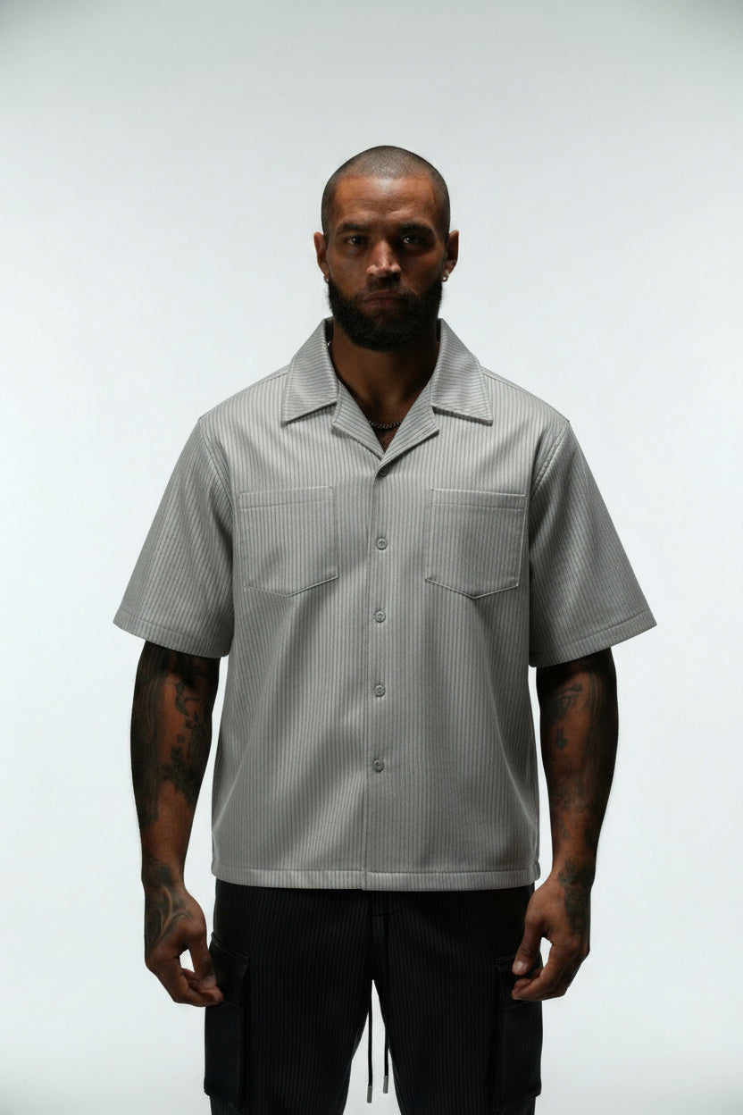 STORM CROPPED CUBAN BUTTON DOWN SHIRT - GREY/STRIPE